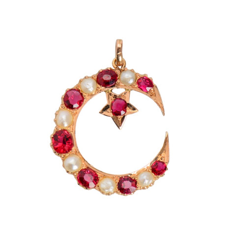 Be the first to review “Edwardian Crescent Moon Star Ruby Pendant”