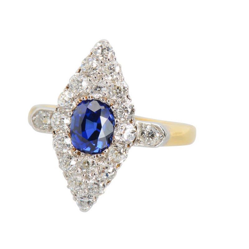 Edwardian Fine Sapphire Diamond Marquise Ring