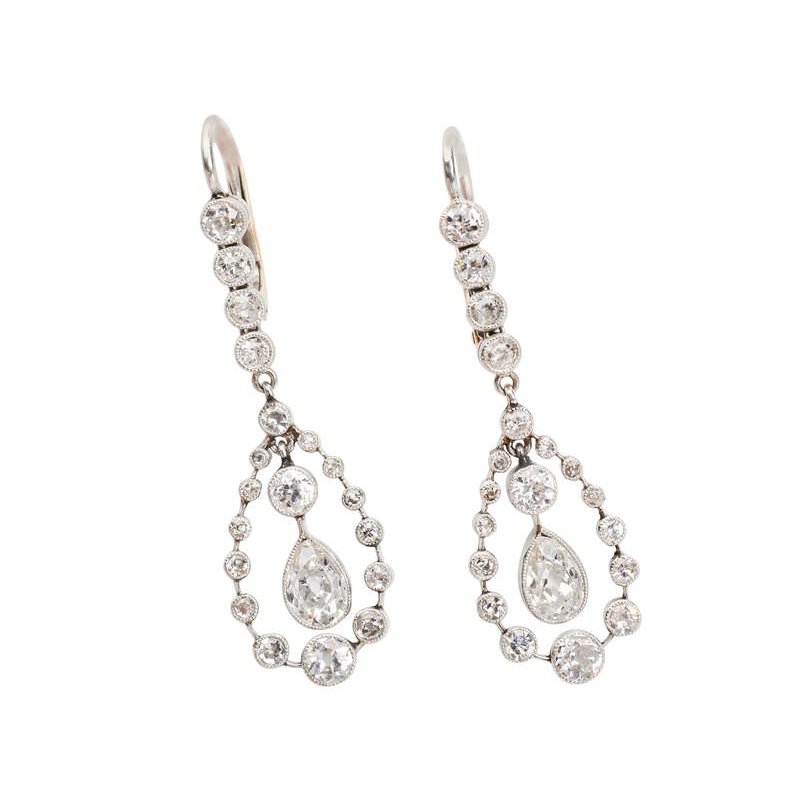 Edwardian Teardrop Diamond Platinum Earrings