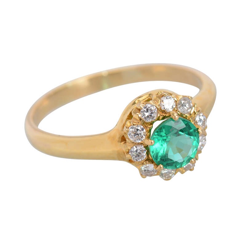 A halo of 10 brilliant cut diamonds appeals to the magpie in us all, while the natural emerald resonates with the earthy gem lover who is seeking color (and those born in the month of May).