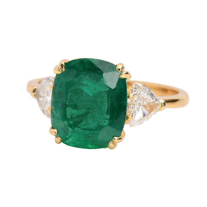 Pared down to the essence of the royal gemstone known as emerald, this chic ring artfully plays as an everyday wear-it-always ring, one for a memorable evening, or a unique engagement ring. Color is all important in an emerald; high on the list are shades