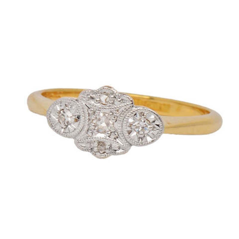 Designed around the year 1900, this platinum-topped 18k gold diamond ring remains every bit as unique and distinct as you are.