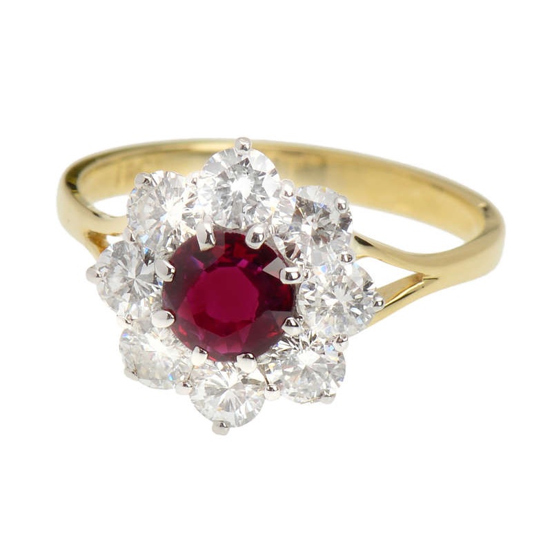 The style is often termed a cluster ring as the gems come together emulating a flowerhead or group. In the parlance of today, this design is known as a “halo ring”?.