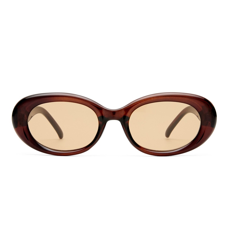 Finished in a chocolate frame with tan tint lenses.