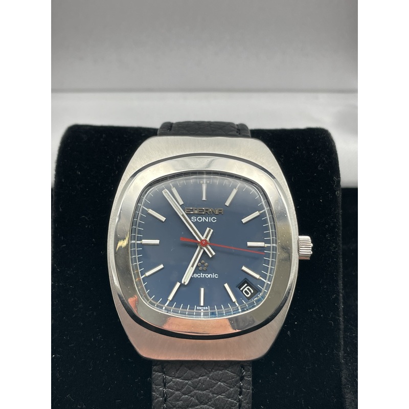 The Eterna Sonic range was launched in 1970, and ran until 1975. Unlike mechanical Eterna watches these do not have serial numbers on the movement,this means we are unable to date this model. Eterna like many other watch companies at the time bought in the