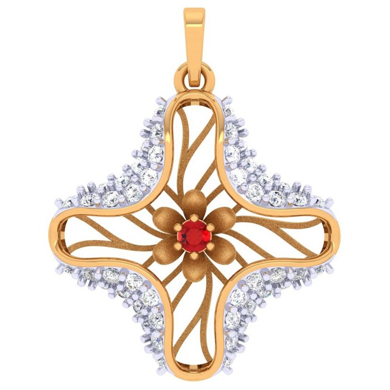 Reflection of true craftsmanship, with utmost finesse is evident in this exclusively crafted gold diamond pendant set design from our collection. The set comes with a dimension of 2.4 CM X 1.9 CM X 2.4 CM, weighs 1.85 gm and bears BIS Hallmark certificatio