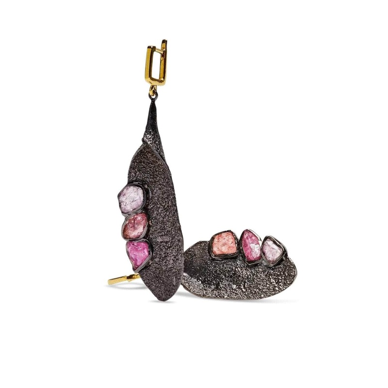 Echoing natural shape and beauty these black rhodium Earrings create a droplet of drama. Crafted from the deepest precious metal they sparkle with the inner light of rough spinel. Their natural state is both powerful and enigmatic.