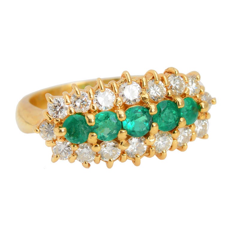 The classic combination of diamonds, emeralds and 18k yellow gold once again creates an electrifying finger bauble.
