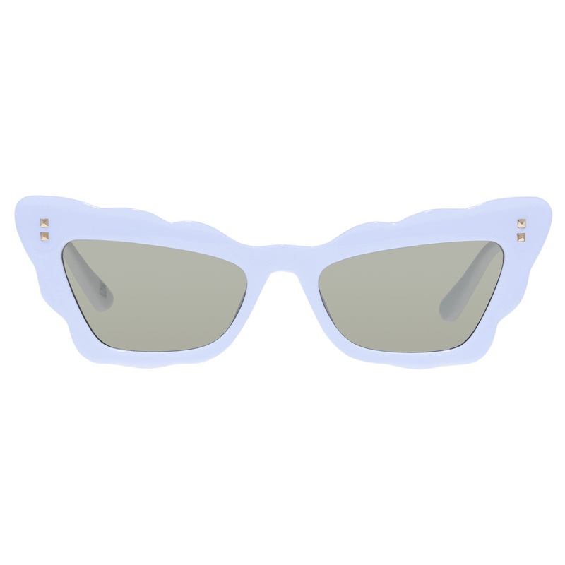 Unlock your new obsession: a bold, sharp cat-eye with a medium fit, featuring feminine scalloped edges and gold pin rivets for ultimate detail. Finished in an ivory frame with khaki tint lenses. Made from polycarbonate frame material