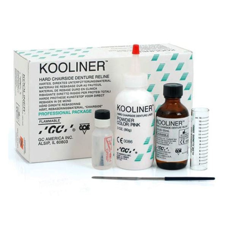 Features & Benefits: Can be cured in the mouth Minimizes distortion Ensures fit of the denture Low exothermic heat 110F at 2mm thicknessIncludes: GC America Kooliner Professional Package