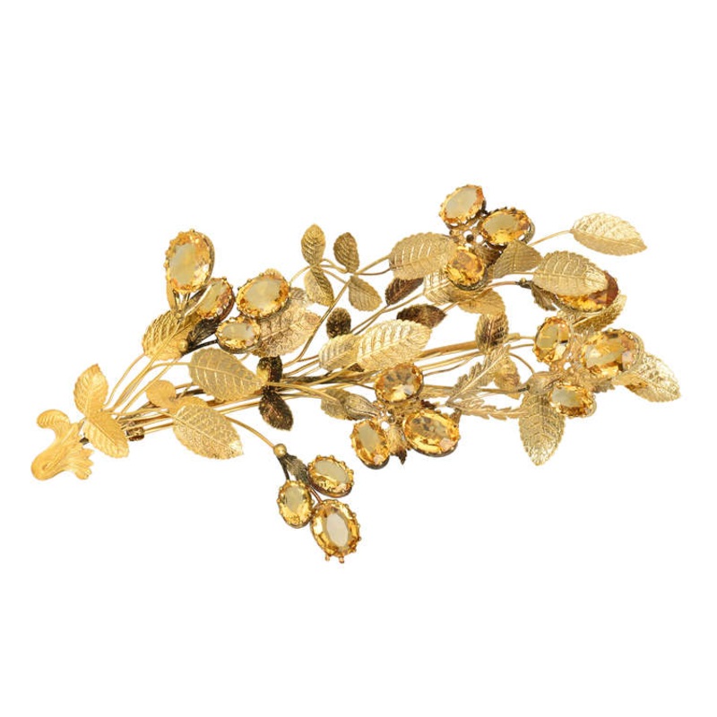 This brooch was created 14k gold and citrines is constructed so that the gold wires are fine enough to move constantly as you do, yet sturdy enough to have lasted over 200 years.