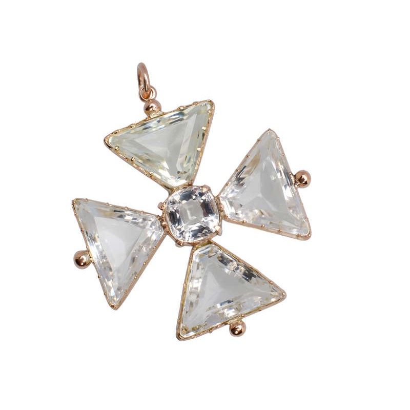 This cross however, is more linked to a style, rather than a true symbolic or religious cross. For around 1790, the Maltese cross came back into fashion and can be found from materials such as paste, Vauxhall glass, to diamonds.