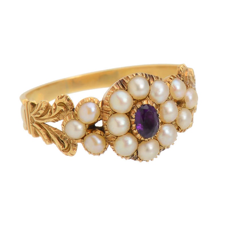 The last decades of the Georgian period (1714-1840) saw a revival in romanticism with a smaller scale popular for finger rings.