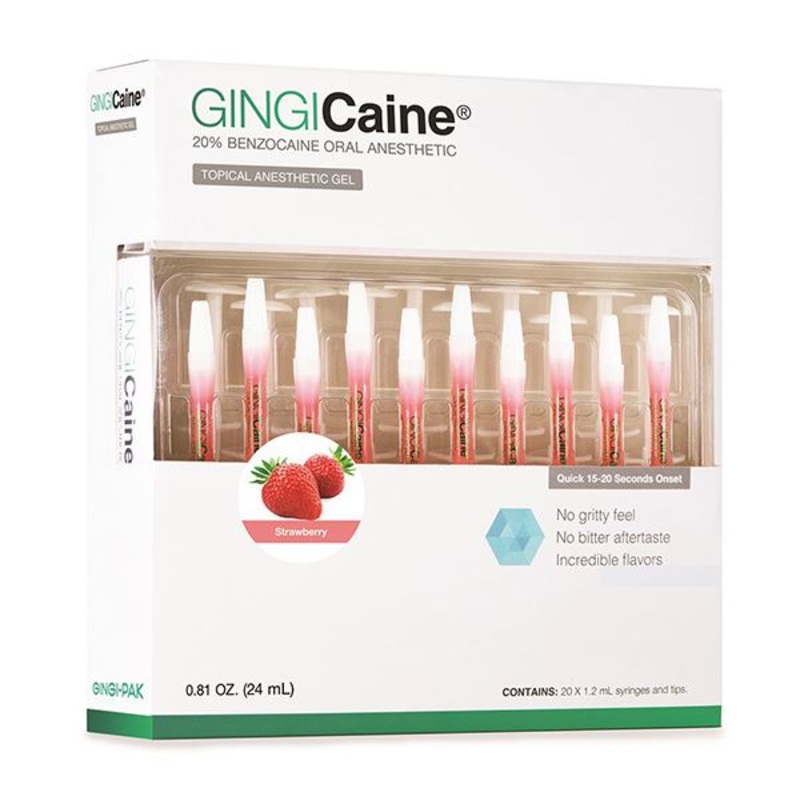 Gingi-Pak, manufacturer of the preferred choice in topical anesthetics the original GINGICaine Topical Gel, introduces GINGICaine Oral Anesthetic Gel in Syringe form. Each syringe contains 1.2 ml of gel that allows the clinician to deliver GINGICaine direc