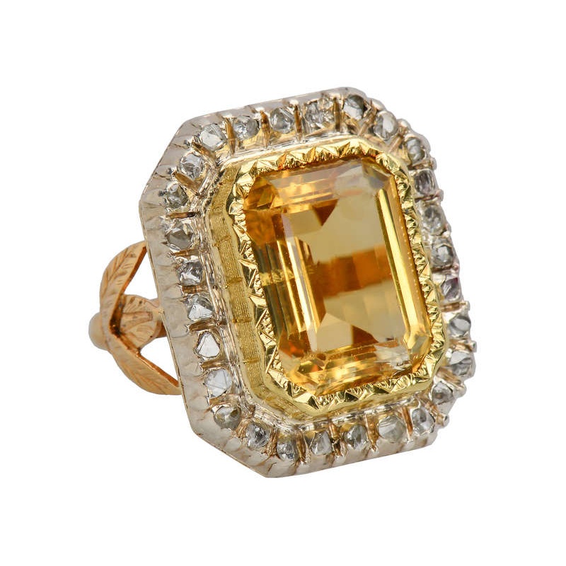 For those looking for the maximum in presence and glam….voil this French citrine diamond ring.