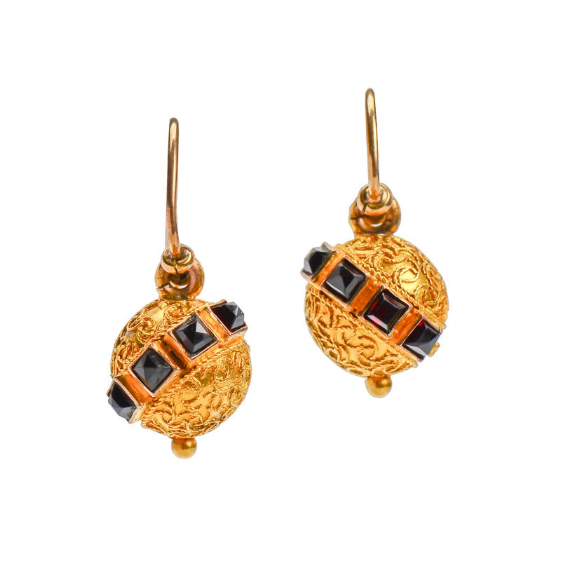 The mid-Victorian Era produced some of the most beautiful earrings created. Known as the Grand Period, jewelry was influenced by the ornamentation of such cultures as the ancient Greeks and Etruscans due to the impact of the masterful Castellani family. Am