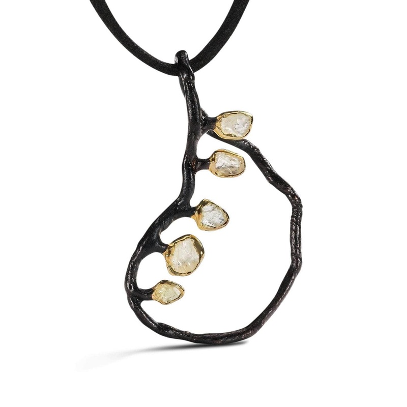 Deep-black anthracite plating is one of 's design inventions, our in-house secret know-how. We use it in combination with gold and raw natural gemstone crystals to create organic jewelry for those who love nature and life itself. Wear this uncut precious c