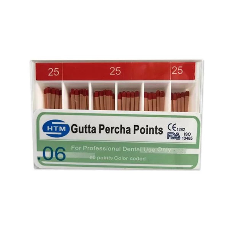 Features & Benefits: For faster and easier root canal obturation Variable tapers & sizes Length marking availableIncludes: Gutta Percha Points Specially Tapered .06 Size #25 (5 x 60Pcs)