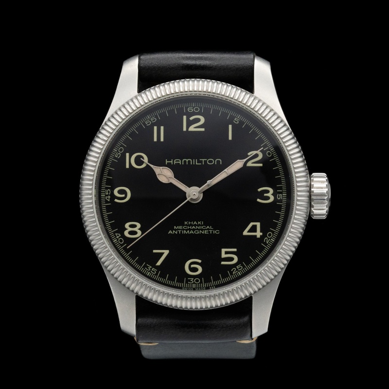 WHAT WE LOVE:The Hamilton Khaki Pilot Pioneer is a tribute to the brands rich aviation heritage, blending vintage military aesthetics with modern functionality. Its dial features bold, luminous Arabic numerals and contrasting white hands, ensuring exceptio