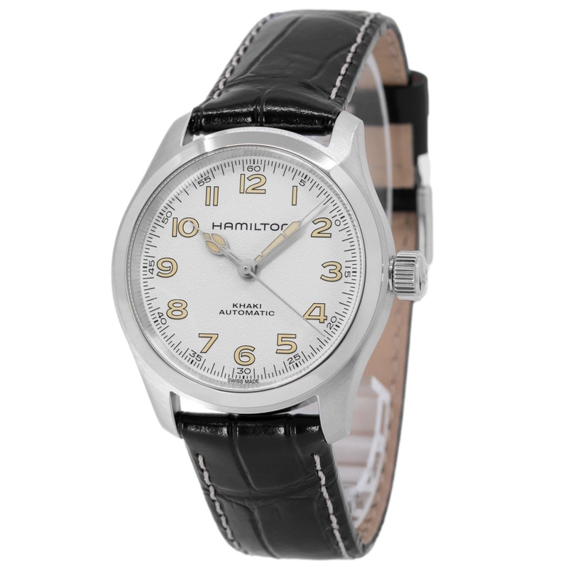 TECHNICAL DATABrand: HamiltonFamily: Khaki FieldReference: H70405710Name: Hamilton Men’s H70405710 Khaki Field Murph 38mmCASEMaterial: SteelGlass: ZaffiroDiameter: 38 X 0Case Thickness: 11.1Water Resistance: 10 ATMDIALColor: WhiteDial Markers: Arabic numeralsBezel: SteelMOVEMENTType: AutomaticCalieber: H-10Base Caliber: -Jewels: 25Reserve: 80 hBANDMaterial: LeatherColor: BlackWidth: 20.00 mmClasp: Pin buckle