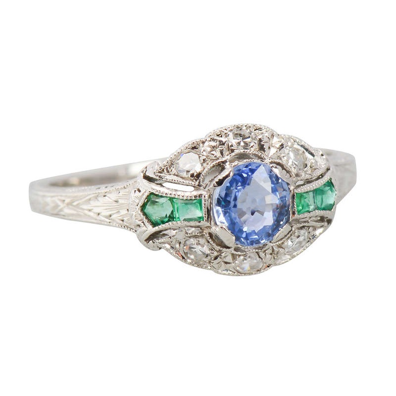 Soft hues of Ceylon blue with grass green emeralds, diamonds and platinum are the stuff that dreams are made of.It is the focal point of your perfect proposal...an oval sapphire, hints of green to reference the sky and the living flora surrounding us. Ice