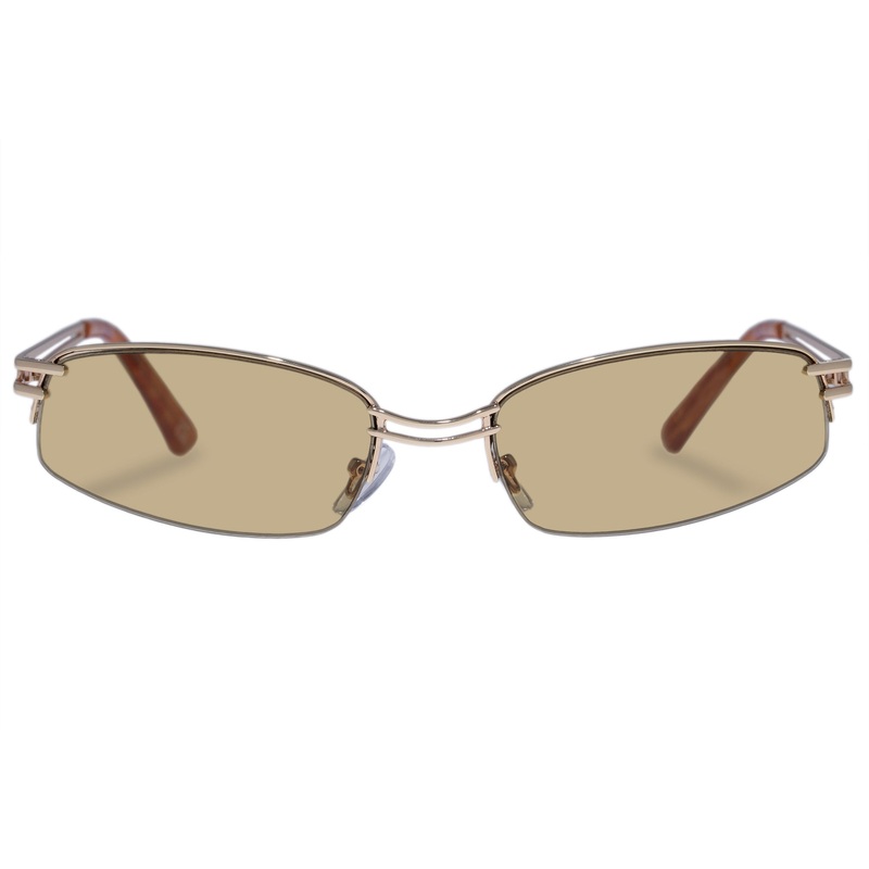 Finished in a bright gold frame with khaki tint lenses. Made from metal frame material