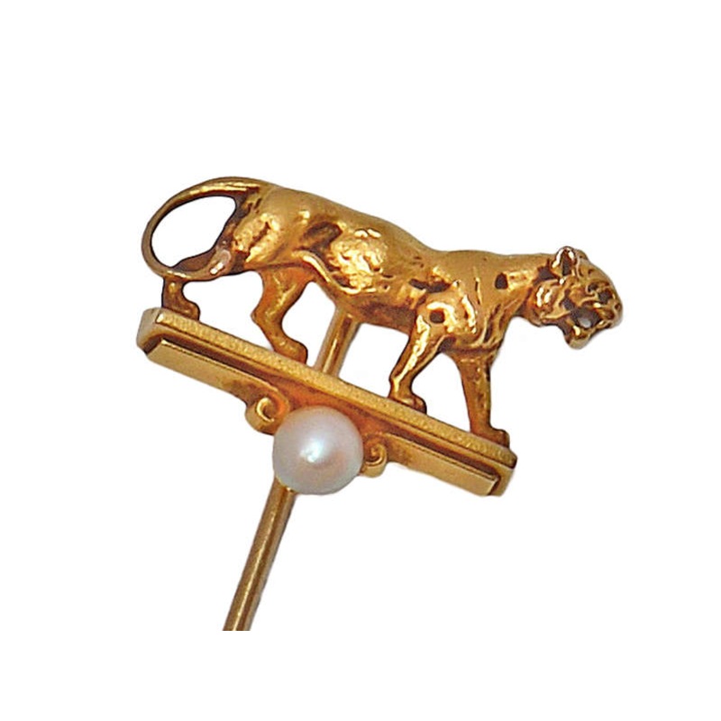 From the notable firm of Henry Blank of Co.. formerly one of the Newark jewelers, comes this lioness or big cat stickpin.