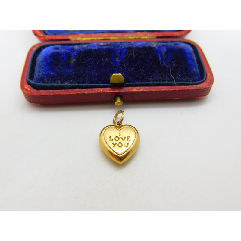 Simply charming "I Love You" heart shape pendant or charm in 9ct yellow gold dating from the mid 1970's. At this time charm bracelets were very popular as it allows the wearer to create a unique item of jewellery personal to them. Still collectable today,