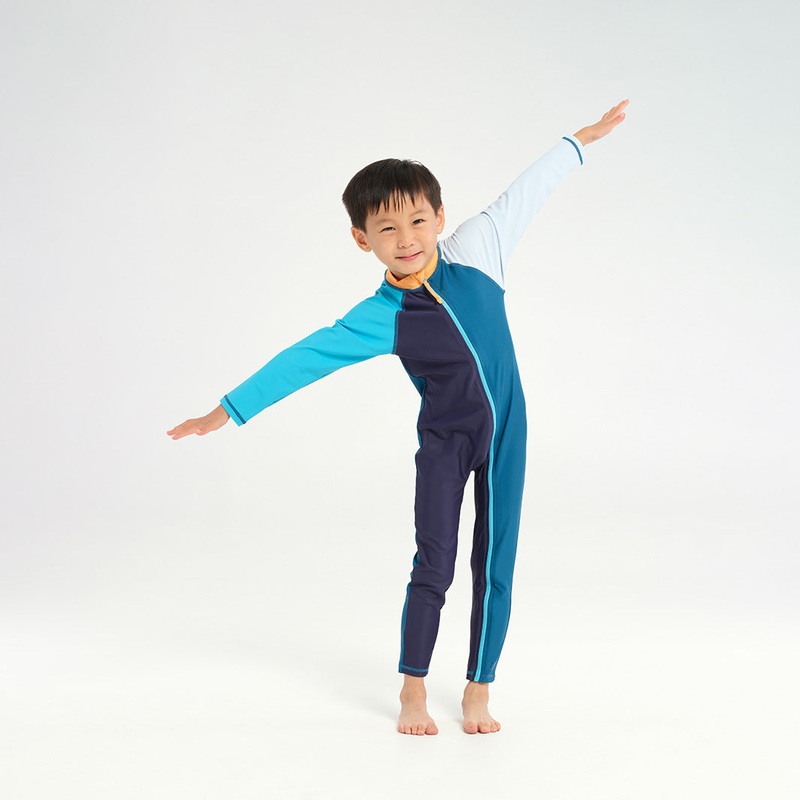 The Infant Blocked LS Swim Zip Suit, created by Cancer Council, offers UPF50+ protection for delicate infant skin. This enables caregivers to confidently take their little ones to the pool or beach, knowing they will be fully shielded. Featuring an long front zip, this suit ensures effortless changing, allowing children to fully enjoy summer while staying sun-safe.