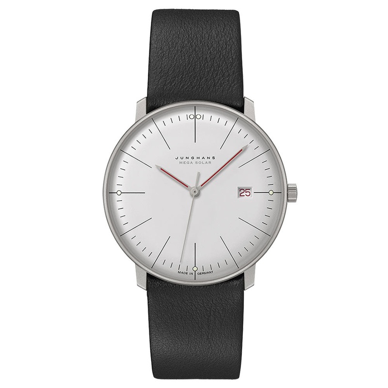 TECHNICAL DATABrand: JunghansFamily: Max BillReference: 59/2326.02Name: Junghans 59/2326.02 Max Bill MEGA Bauhauas 38mm SolarCASEMaterial: TitaniumGlass: Sapphire GlassDiameter: 38 X 0Case Thickness: 9,9Water Resistance: 5 ATMDIALColor: WhiteDial Markers:
