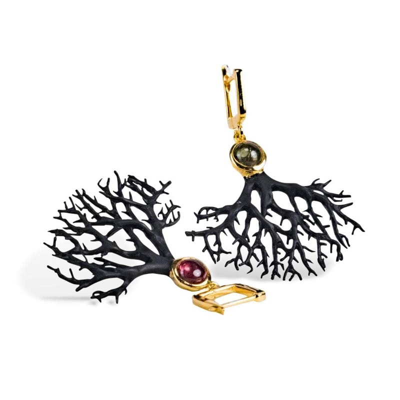 Conflicting colors, contradicting opinions... this neck piece with a bright pink dissonant tourmaline on blackened silver and gold - isn't that just who you are? Don't shy away; consistency is boring! Wear solo or combine with Kharra Pink Tourmaline Pendan