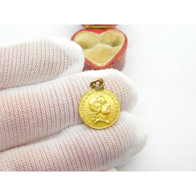 Details: A fantastic and wonderfully designed antique King George I 22ct yellow gold third guinea coin charm or pendant with lovely detailing dated 1718, the coin itself in very fine condition although mounted. This is a wonderful item that would make a pe