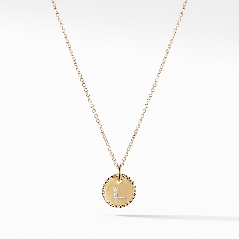 18-karat yellow gold Pav diamonds, 0.01 total carat weight Adjustable length, 16-18in Charm, 10mm Chain, 1.1mm Lobster clasp-
