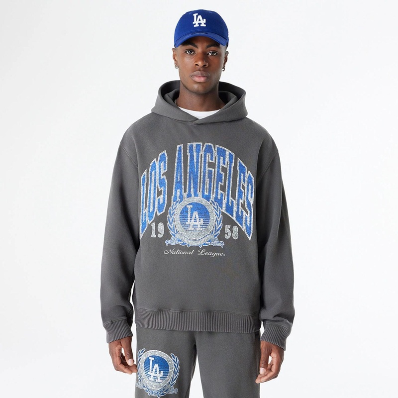 Oversized Essential LA Dodgers Oversized Pullover HoodieLA Dodgers wordmark graphic with logo on frontNew Era Flag embroidered on left of hoodNew Era Flag embroidered on left sleeveKangaroo pocket on frontDrawstring hood80% COTTON, 20% POLYESTERProduct ID: