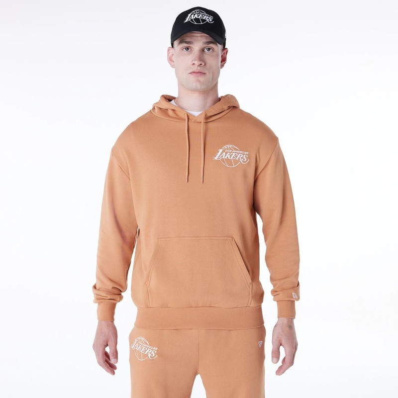 NBA League Essential LA Lakers Oversized Pullover HoodieLA Lakers logo on left chestNew Era Flag embroidered on left sleeveKangaroo pocket on frontDrawstring hoodOversized fitModel is 5ft 9in tall and wears a size MediumOversized fitMade with French Terry