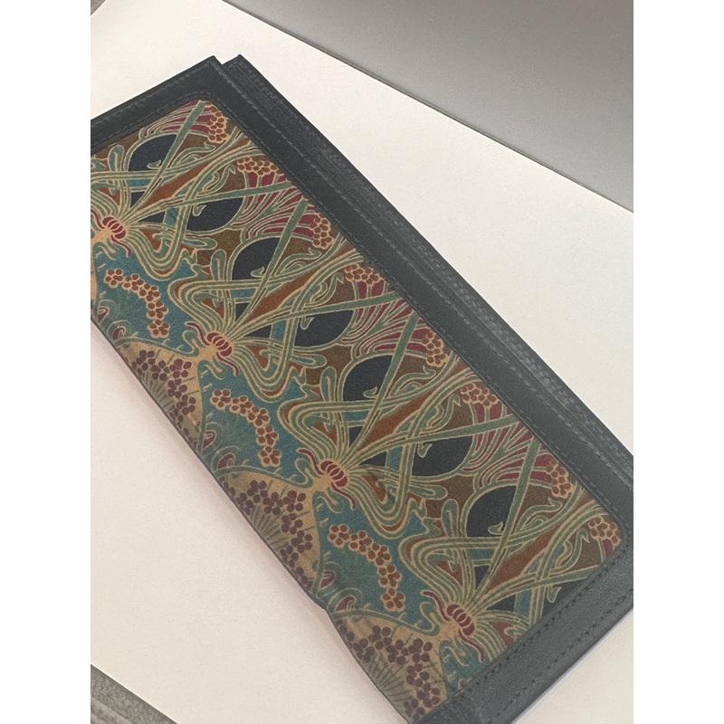 This is a truly luxurious and refined item. The combination of navy leather and tana lawn creates a beautiful contrastleather for a smooth, polished feel and tana lawn for its delicate, intricate pattern. Liberty of London is known for its impeccable craftsmanship and timeless designs, so this cheque book holder would definitely be a statement piece. The choice of materials seems to balance both functionality and elegance.