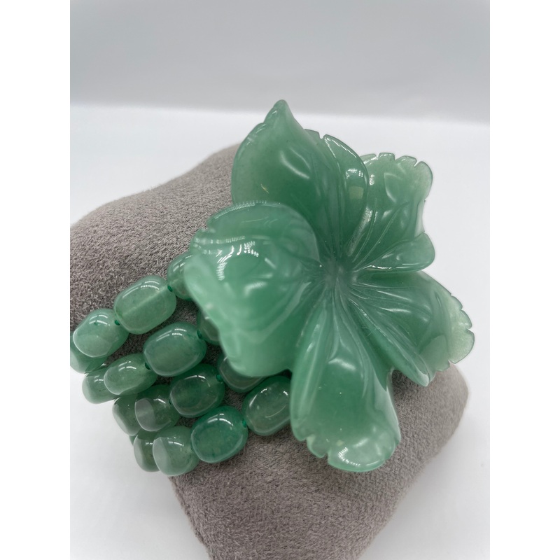• Design: Features large flower motifs, intricately carved from gemstones, strung on an elastic band for a comfortable fit.
