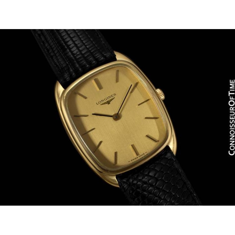 Despite cost-cutting measures that have brought about the widespread use of cheaper quartz movements for many wristwatches, Longines equipped this watch with one of their mechanical movements designed to last a lifetime. Using traditional watchmaking practices, gifted craftsmen poured individual attention into each wristwatch. As a result, mens Longines wristwatches with mechanical movements are often more sought after by collectors than their quartz counterparts.