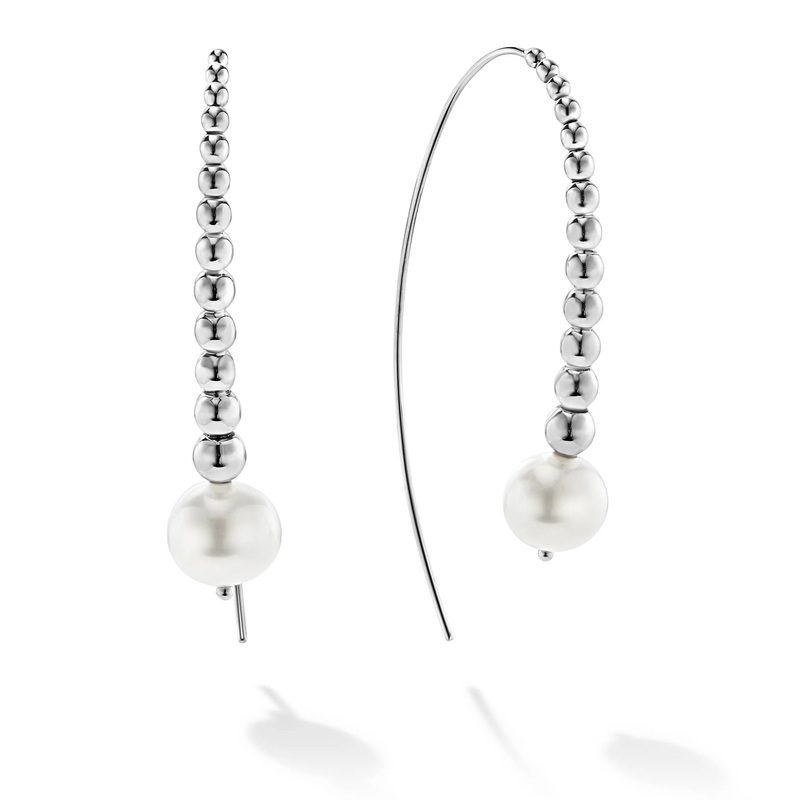 Lightweight cultured freshwater pearl drop earrings accented with graduated Caviar beaded details.