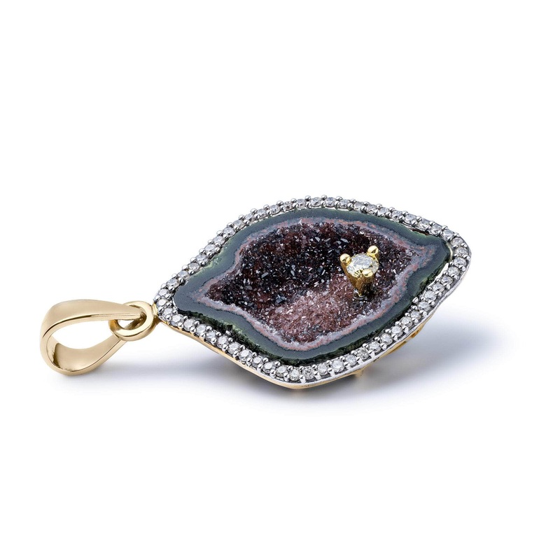 Stones: Rough Geode 18 ct, Diamond 0.06 ct, 0.14 ct