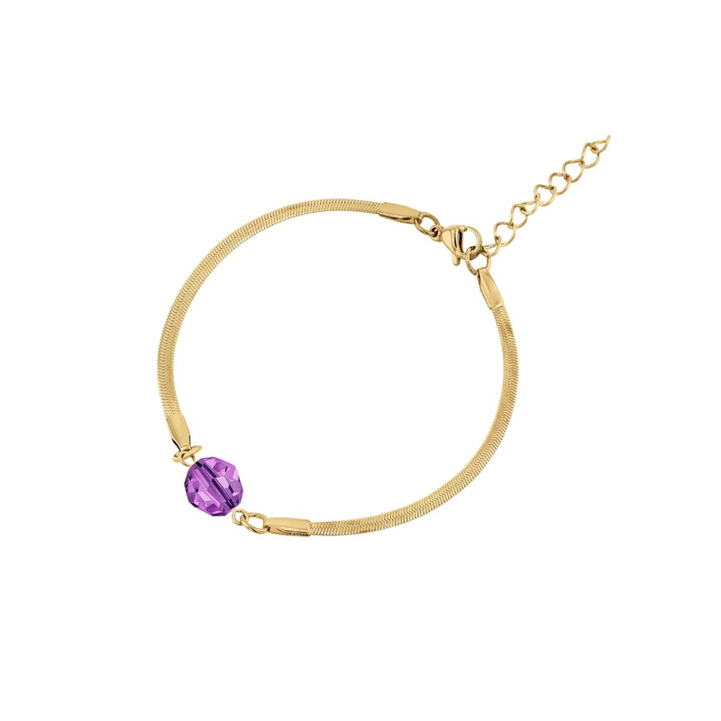GenderFemaleMaterialStainless steelAdjustment range185-225 mmClosureLobster claspPendant size8 mmCrystalAustrian crystal ColorGold / Purple ReferenceJS.0083
