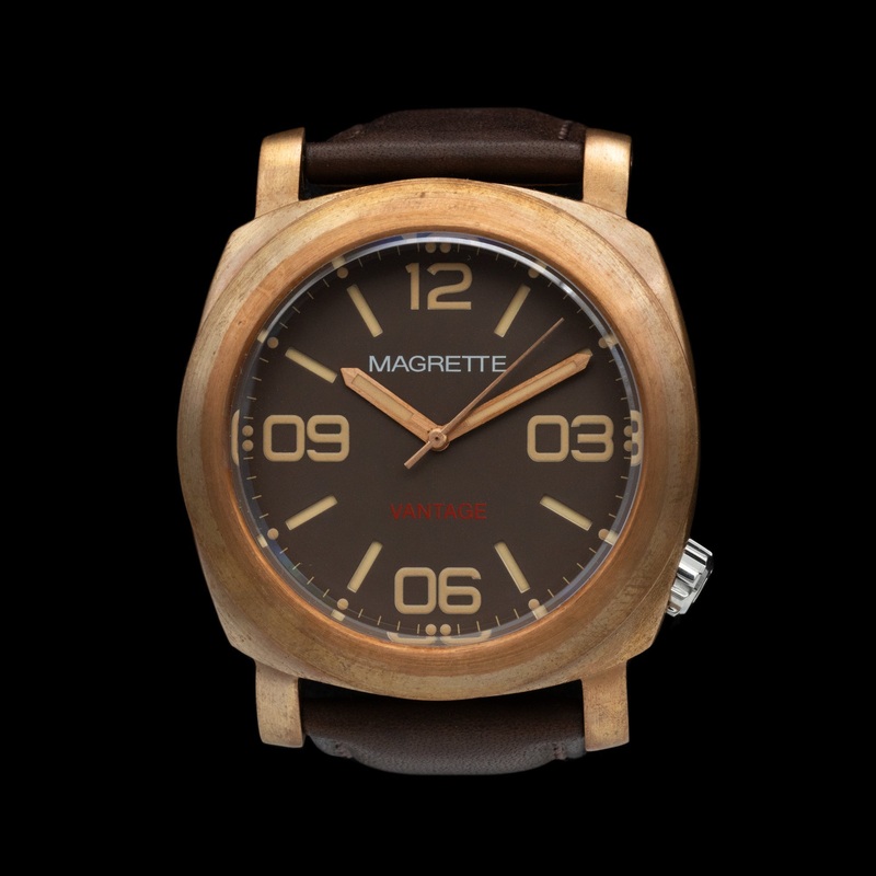 The Vantage in bronze is a great-looking watch with an impressive depth rating of 500M. This sold-out limited edition features a ‘tropical’ style brown dial reminiscent of vintage dive watches.