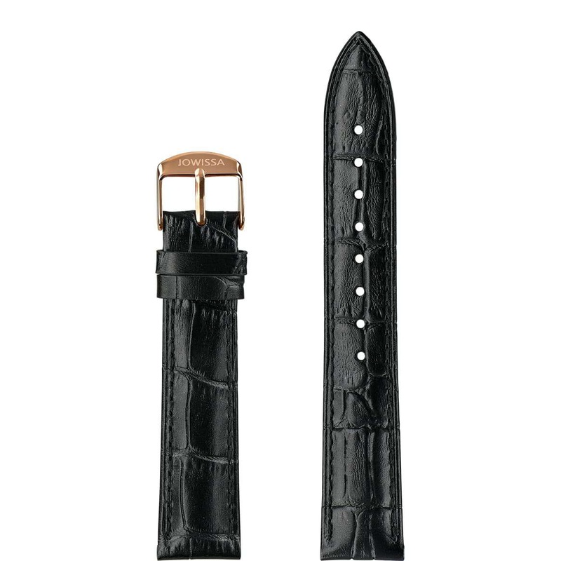 Strap materialSemi-matt genuine leather strapBand width18 mmBuckleStainless steel with laser-engraved logoBuckle colourRose-goldInterchangeable bandYes, with quick release ColorBlack / Rose ReferenceE3.1443.L