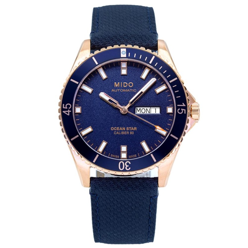 TECHNICAL DATABrand: MidoFamily: Ocean StarReference: M0264303604100Name: Mido Men’s M026.430.36.041.00 Ocean Star WatchCASEMaterial: SteelGlass: Sapphire GlassDiameter: 42.5 X 42.5Case Thickness: 11.75Water Resistance: 20 ATMDIALColor: BlueDial Markers: No numeralsBezel: Gold/SteelMOVEMENTType: AutomaticCaliber: ETA C07.621BANDMaterial: TextileColor: BlueClasp: BuckleFUNCTIONSDateOTHER FUNCTIONSLuminescent Hands,Luminous indexes ,PVD/DLC coating