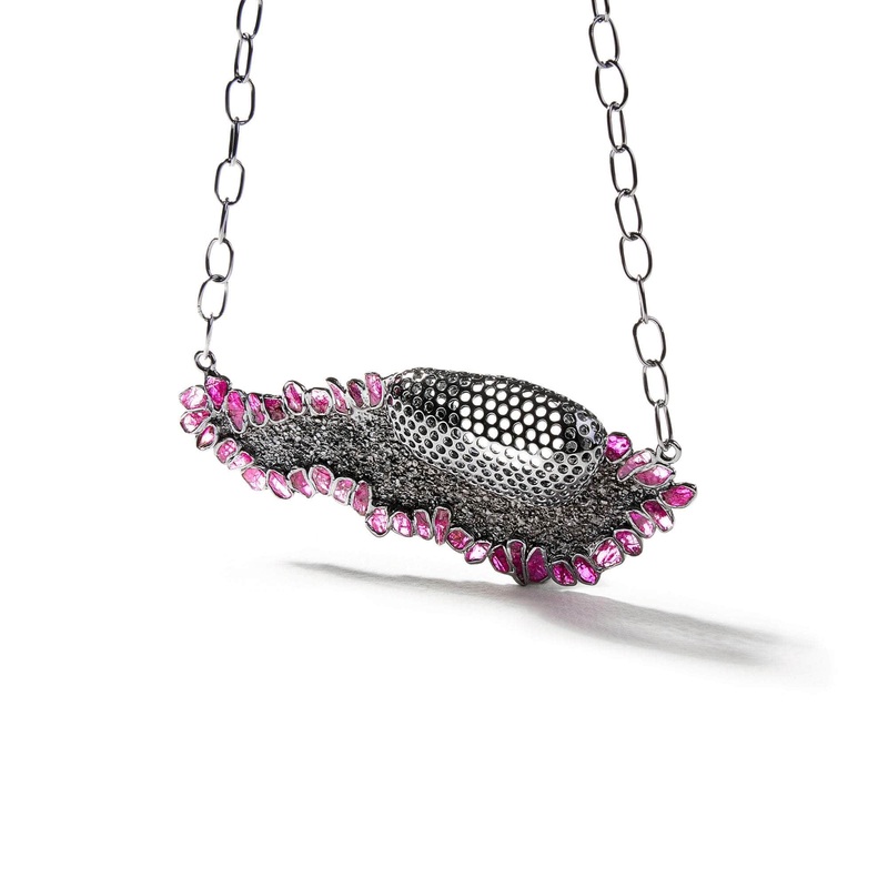 Did you know that our anarchist designer, , has invented an exclusive method for raw gemstone setting, solely used by our studio and unseen in traditional jewelry practices? Introducing our latest freak, the modern necklace, showcasing natural rough rubies in the very shape they emerge from the depths of the earth, untouched by human hands. The rugged silver texture of this piece reveres the inherent beauty of imperfections found in nature, empowering the wearer to see all things differently.