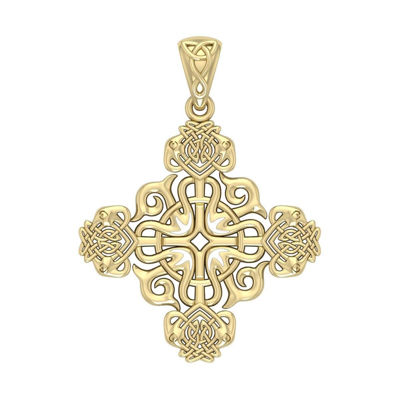 Modern Celtic Knotwork Cross Solid Gold Pendant GPD984**All prices for our gold items are subject to change without prior notice.**This ornate Celtic knotworkgold cross pendant designed by renowned artist Courtney Davis showcases the intricate beauty of an