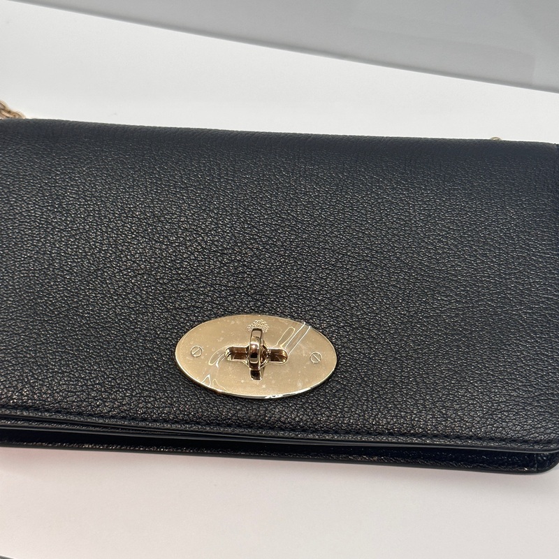 Mulberry Bayswater Clutch. This bag features gold hardware with a good chain that can be detached so to be used as a clutch or a cross body bag.