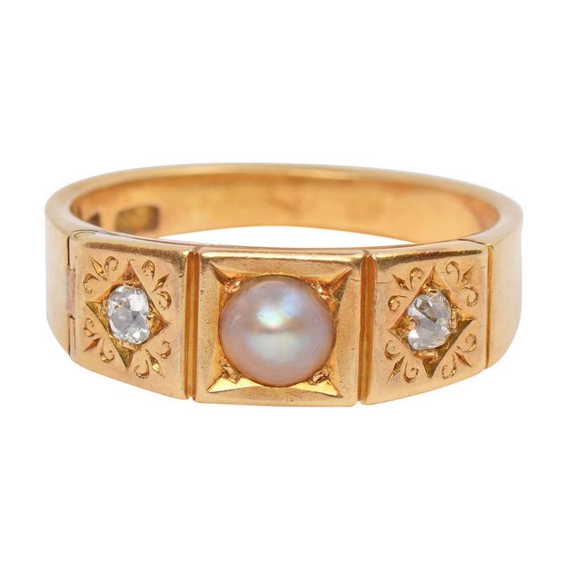 Locket rings remain scarce and desirable. The skilled dealer from whom we purchased it was unable to spot this example because of how well-crafted it is.But the near-invisible hinge to one side of the three-section top gave it away.Raise the "lid" from the