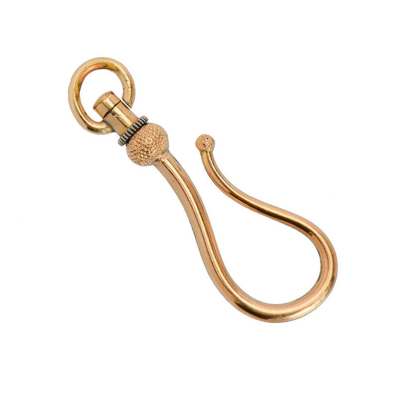 All your talismans and adored dainties can be hung on one hook. In 14k yellow gold, this swivels completely around. With a tapered and sinuous “U” shape overall, the thinner end terminates in a small knob to hold charms in place. Slide on and remove your dangly bits whenever you choose to mix up your loo as the mood strikes you.