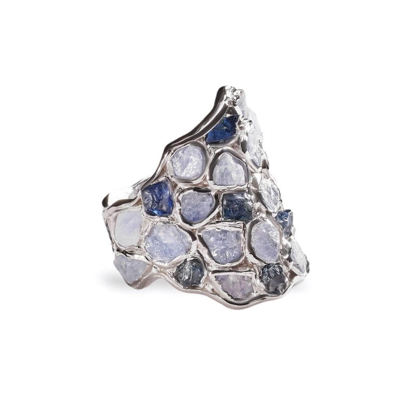 This wider barrel style ring is richly coated with beautiful glowing gemstones that have true grace. The bright gold setting allows them to shine brightly and brilliantly with their rich color and to celebrate their raw organic shape.Silver 925Stones: Ligh